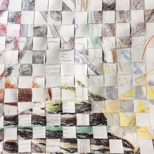 This work consists of two coloured pencil drawings on paper, that have been cut into strips and woven together. The images of “things we don’t understand” and “things that are ambiguous” are redrawn from photos and field notes from a project in the so-called “slid sites” in Brunkulslejer, Denmark, in which I collaborated with my anthropologist colleague Mathilde Højrup to construct a natural history of these anthropogenic transformed sites. The slid sites are rather strange, being areas where vibrations from large tree-harvesting equipment caused super-saturated sandy soil to buckle into 3-m high linear undulations. The resulting low marshy areas and high peaks have been recolonized by various plants and animals. I was interested in our process of interpreting things we saw in the environment: what was completely mysterious to us, what could we only partially interpret, what eluded a single explanation and might indicate more than one thing?