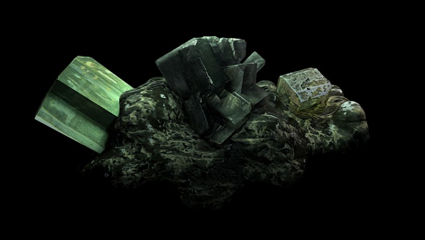 CGI visual of imaginary mineral using 3D modeling techniques, developed in collaboration with Valle Medina and Benjamin Reynolds (Pa.LaC.E).