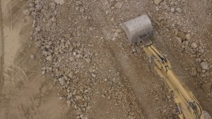 Drone view of an excavator at Le Mormont, Canton of Vaud, Switzerland.