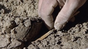 Archaeological excavation at Le Mormont (video still from Le crépuscule des Celtes by Stéphane Goël, Climage, 2008).