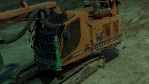 CGI visual of an excavator under water using photogrammetry-based 3D modeling, technology from drone perspective, developed in collaboration with Valle Medina and Benjamin Reynolds (Pa.LaC.E).