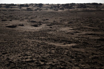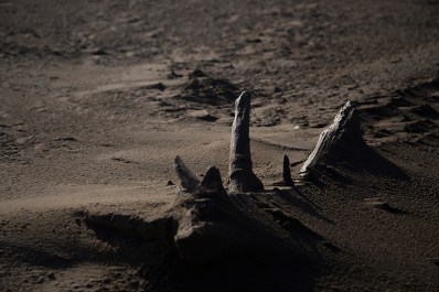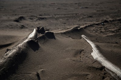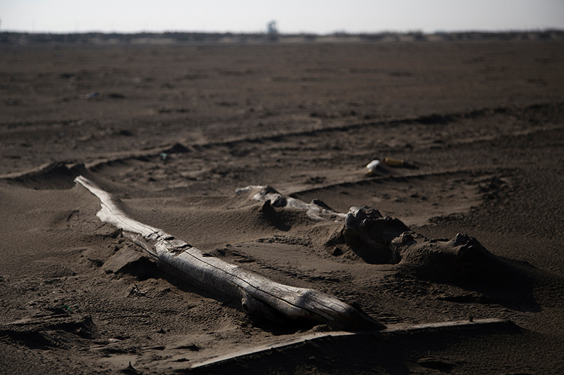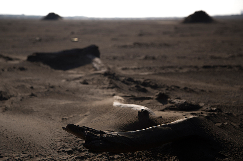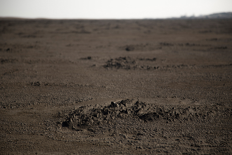 Fangar (Quagmire) explores the surface of an area of the Ebro Delta, one of the largest wetland areas in the western Mediterranean region. Portrayed as a desert, this work was in fact developed at the sea shore. This is revealed by the main subject of the images: the shiny driftwood, which was washed up on the beach.