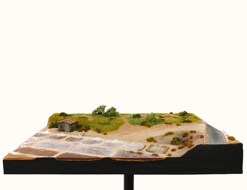 Medium: Teloxys aristata, lichen, potassium sodium tartrate tetrahydrate, birch ply, extruded polystyrene, card, plaster, sand, soil, acrylic, epoxy, balsa.