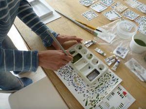 Colour observations of the landscape surrounding Cortijada los Gázquez were made from a single viewpoint, at timed intervals, during a single day. Prior to the residency a structural framework for the painting was developed and fabricated. Exploring colour over distance and time the sequential works made during the residency document an aspect of the temporal luminosity and nuanced hues experienced in the landscape.