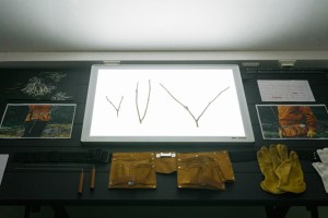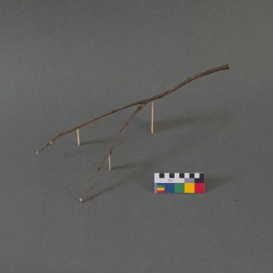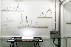 Y-rod (2019), model assembled in studio (wood, branch and scale table – variable dimensions).