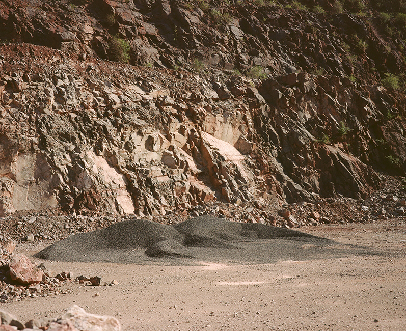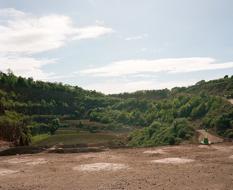 I’d make pre-arranged visits to the quarry during the weekends when the heavy machinery was not in use, outside the schedules of drilling and blasting necessary to discharge hundreds of tons of rock in seconds. Limestone for construction is freed from formation with dynamite. These violent blasts make it possible to study the history of the sediments in a relatively compact space and time: an explosion lasting just seconds exposes, in one action, millions of years. On these ‘non-operational’ mornings the steep sided quarry was uncharacteristically quiet. Taking photographs, sound recordings, and testing the reverb in of the terraces I met weekend shift engineers and the local lapidary society. The quartz, amethyst and other semiprecious stones or fossils, aesthetically and historically interesting to geology enthusiasts were of no value to road building – so the lapidarists had received an invitation to pick over the rubble, point-mouthed geology hammers in hand, through ‘safe’ zones marked out by large boulders and fluorescent tape. As of 2017 the quarry is gradually being decommissioned. As industrial aggregate production continues to wind down, the oldest pits and ledges created though years of extraction, will undergo a ten-year restoration to become a recreational park.