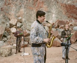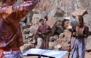 rocks are for throwing was a place specific performance in a haematite rich, limestone quarry on the outskirts of Bristol in June 2017. A new musical score was composed for the performance by William Frampton in response to text and fieldwork. rocks are for throwing now exists as a film and series of photographs of the rehearsals and performance taken by Maeve O’Neill.